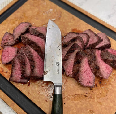 Picanha in Scheiben geschnitten mit einem unglaublichen @hexclad Messer!