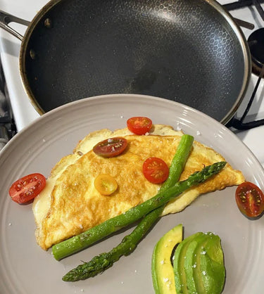 Die HexClad 30 cm Pfanne ist ideal, wenn Sie für mehrere Personen kochen. Ob für ein Familienessen oder ein Brunch mit Freunden – diese geräumige Pfanne kann alles bewältigen. Bereiten Sie eine Frittata zu oder braten Sie problemlos zwei Steaks gleichzeitig. Sie können bis zu vier Lachsfilets mit Platz für Gemüse zubereiten. Mit dieser Pfanne, die so viele Möglichkeiten bietet, sind Ihrer kulinarischen Kreativität keine Grenzen gesetzt.